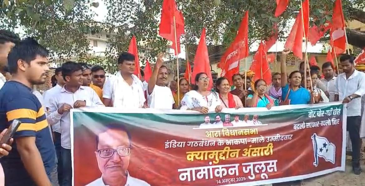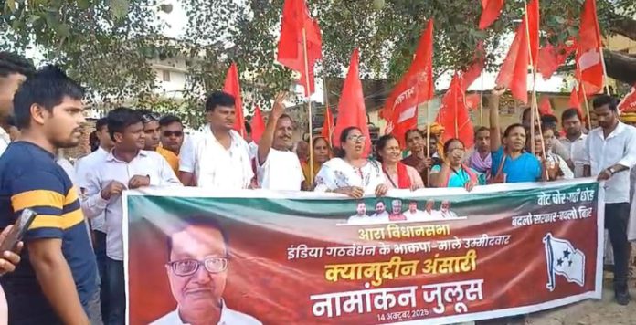 आरा विधानसभा से महागठबंधन समर्थित भाकपा माले के प्रत्याशी क्यामुद्दीन अंसारी के समर्थन में काफी संख्या में महागठबंधन के लोगों ने नामांकन जुलूस निकाला इस मौके पर जीत का दावा किया गया