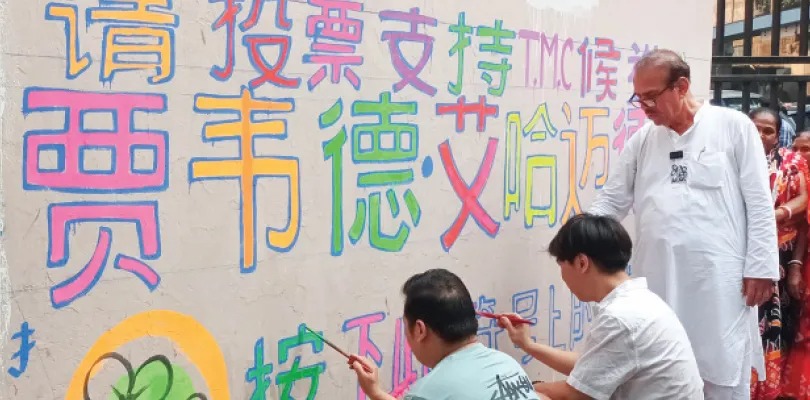 खुद जावेद खान भले ही मंदारिन भाषा में पारंगत होने का दावा न करें, लेकिन अपने समर्थकों के साथ दीवार पर रंग भरते हुए उनकी ऊर्जा साफ नजर आती है। तेज धूप में पसीने से भीगे कुर्ते के बावजूद उनका उत्साह कम नहीं हुआ। पिछले विधानसभा चुनाव में उन्होंने 50,653 वोटों से जीत दर्ज की थी और बाद में लोकसभा चुनाव में इस क्षेत्र में तृणमूल की बढ़त और बढ़ी। इसी आत्मविश्वास के साथ उन्होंने कहा—“इस बार जीत का अंतर और बड़ा होगा।”