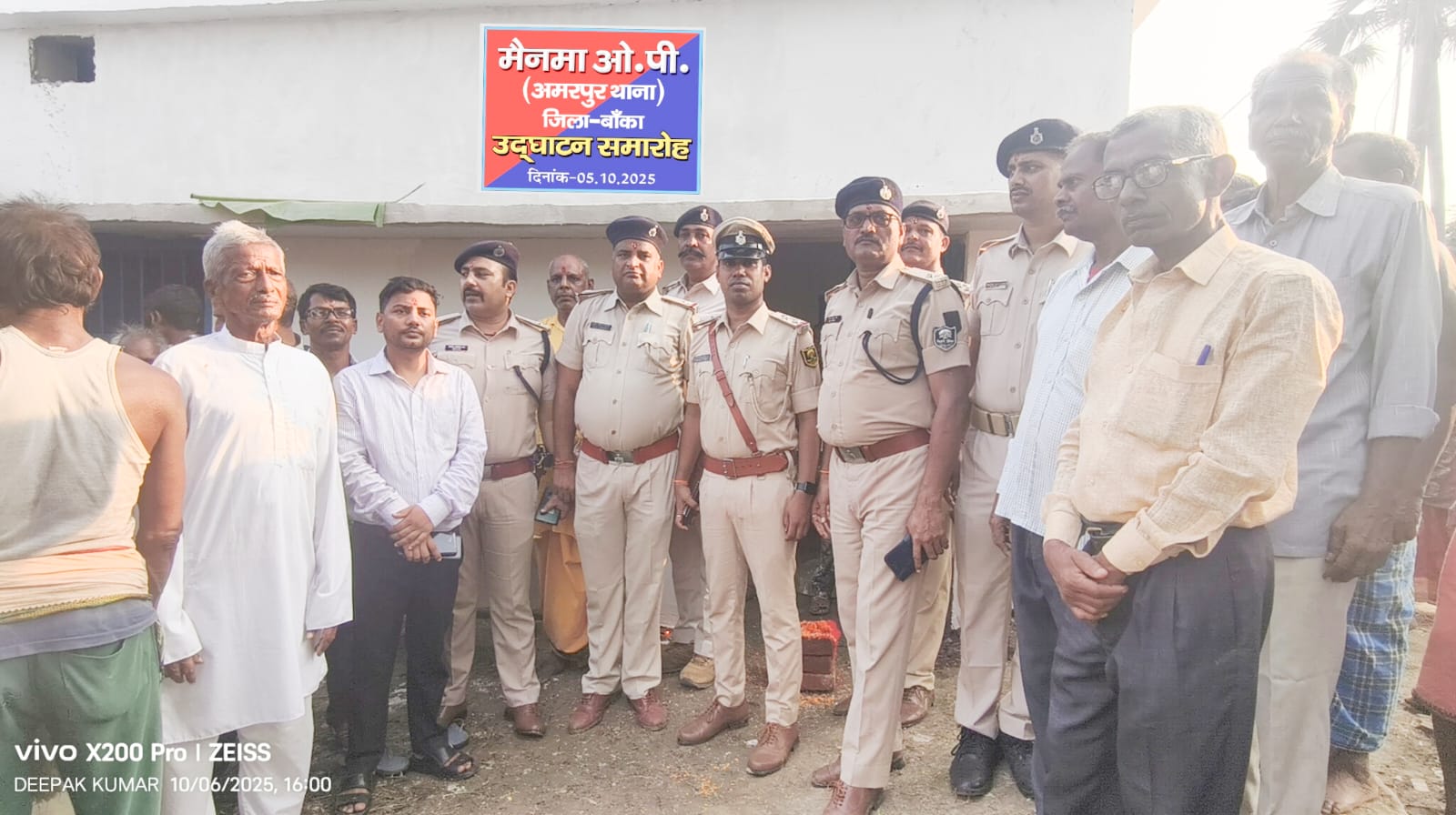 सोमवार को अमरपुर प्रखंड के बीडीओ प्रतीक राज, बांका अंचल निरीक्षक रामा शंकर सिंह और अमरपुर थाना अध्यक्ष पंकज कुमार झा ने संयुक्त रूप से फीता काटकर मैनमा ओपी थाना का उद्घाटन किया। मौके पर स्थानीय ग्रामीणों, जनप्रतिनिधियों और पुलिस पदाधिकारियों की बड़ी संख्या मौजूद रही।