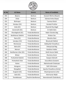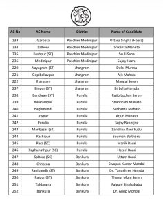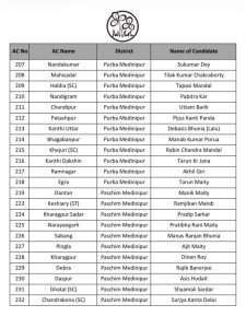 | क्रमांक | विधानसभा क्षेत्र | उम्मीदवार का नाम |