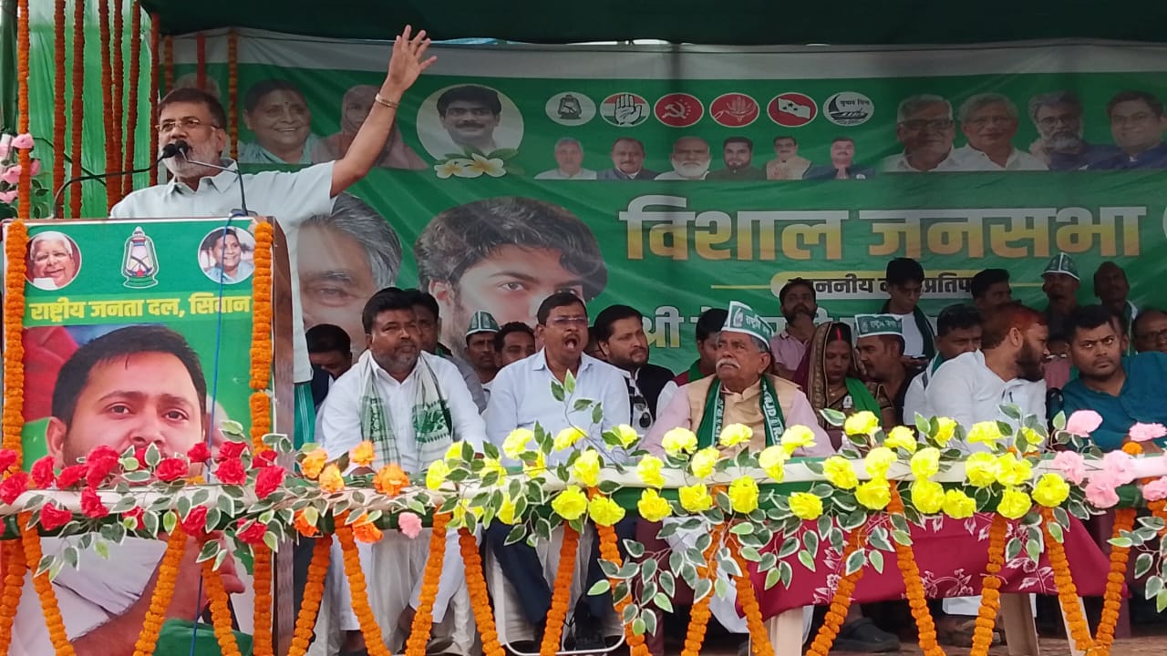 बिहार विधानसभा चुनाव के तहत सीवान में आज राष्ट्रीय जनता दल (आरजेडी) उम्मीदवार अवध बिहारी चौधरी के समर्थन में एक जबरदस्त जनसभा आयोजित की गई। इस जनसभा में मुख्य वक्ता के रूप में पहुँचे क़ायदे उर्दू शमीम अहमद ने अपने जोशीले अंदाज़ और बेबाक़ शब्दों से लोगों के दिलों को छू लिया।